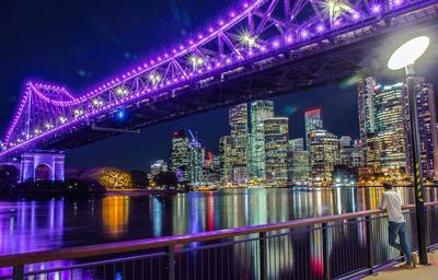 Redeveloped section of waterfront land under the Story Bridge filled with restaurants, bars and public space.