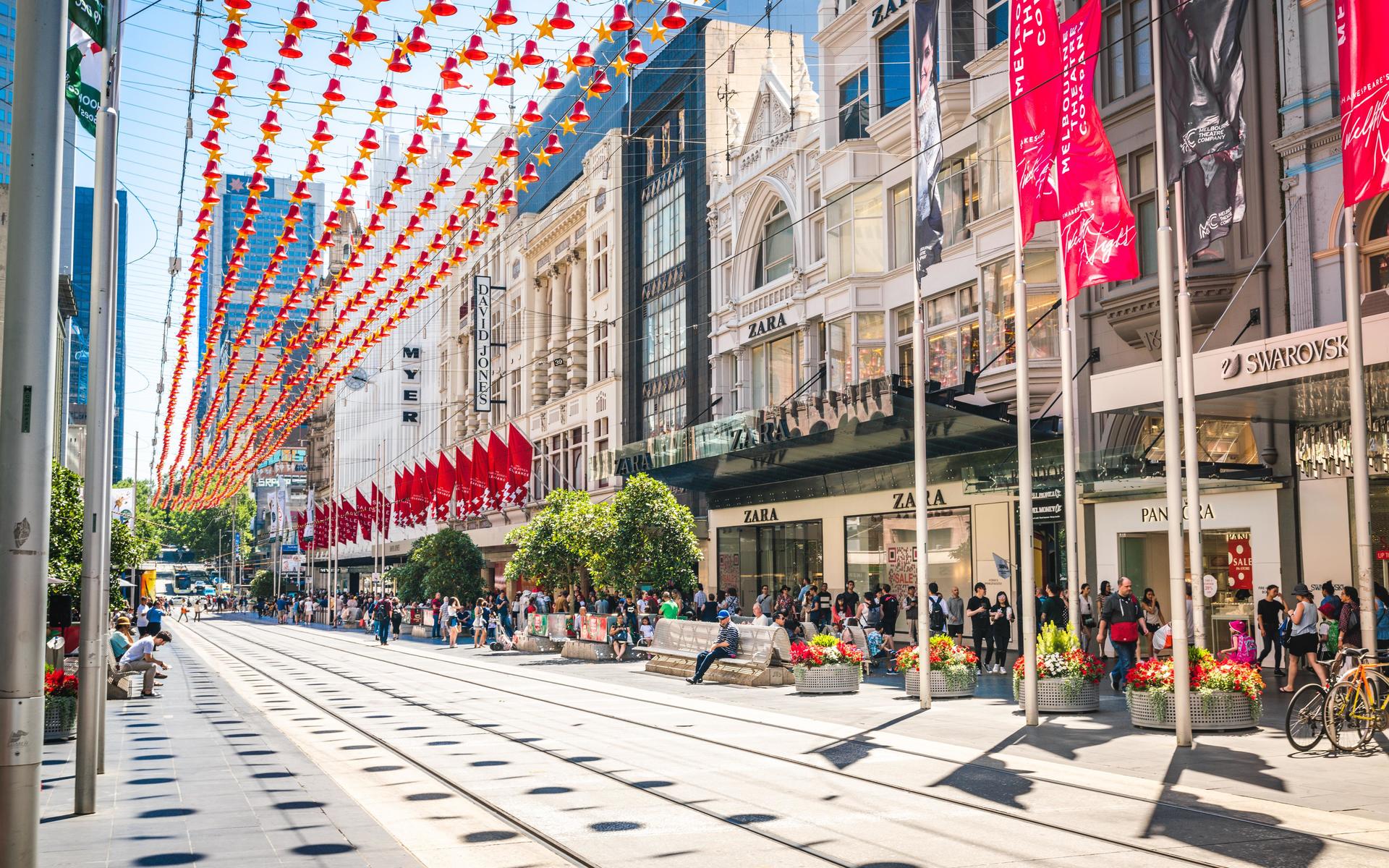 It seems to be standard for Australian cities to have a pedestrian-only shopping district in the middle of the CBD - Bourke Street is Melbourne’s instance of this. The mall runs between Swanston and Elizabeth streets and apart from trams that run down the middle of the street, it is a pedestrian-only area. You’ll find the major department stores like Myer and David Jones as well as flagship stores for major retailers and countless smaller retailers.