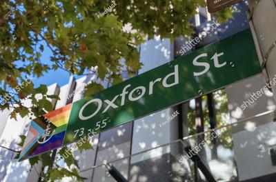 Pride flags adorn Oxford street signs. FiledIMAGE via Shutterstock